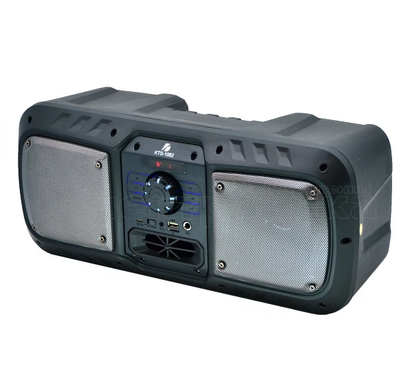 Разъём MIC: 6.3 мм Bluetooth: есть FM: есть USB: есть AUX: есть TF: есть Дисплей: есть Встроенный аккумулятор: 2.4 А Встроенный микрофон: нет Мощность (MAX): 10 Вт Цвет: черный Размер: 170*180*420 мм Материал: пластик