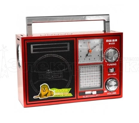 FM: 87-108 MHz AM: 522-1620 KHz SW: 6.8-22 MHz Фонарик 1Led Часы Разъёмы: USB, AUX 3.5mm, TF(до 32Гб), SD(до 32Гб) Питание: аккумулятор встроенный (зарядка 6V) / 220V шнур в комплекте (ТОЛЬКО ДЛЯ ЗАРЯДКИ АККУМУЛЯТОРА) / 4*R20 (в комплект не входят) Гнездо 5.5mm 5B для заряда аккумулятора Размер: 24.5 х 16 х 8.5 см