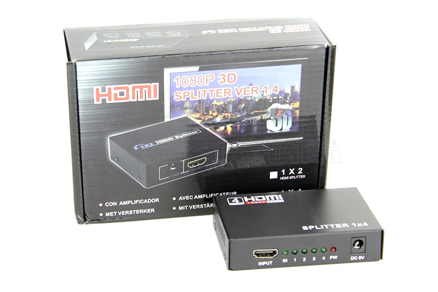 HDMI Сплиттер 1Х4 port Делитель HDMI-сигнала обеспечивает возможность подключения одного и того же источника цифрового HDMI сигнала одновременно к четырем устройствам отображения (ТВ, проекторы и пр.). При этом обеспечивается несопоставимое с аналоговым подключением (например, компонентным) качество передачи видео сигнала (отсутствие помех). Разветвитель цифрового аудио/видео сигнала HDMI: 1 HDMI вход, 4 HDMI выхода Основная область применения: обеспечение демонстрации HD оборудования в торговых сетях, шоу румах, на выставках, а так же разводка HD сигнала по коттеджу или квартире!